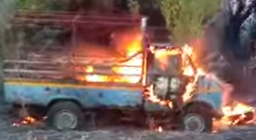 Η φωτιά εκδηλώθηκε σε ξερά χόρτα και έκαψε ένα φορτηγάκι που βρισκόταν στο σημείο.