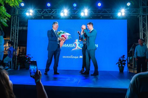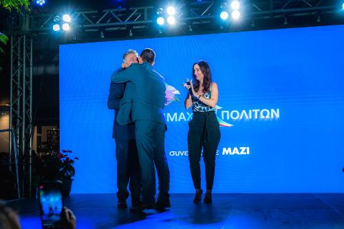 Η βραδιά ξεχείλισε από συγκίνηση όταν οι δύο πιο δυνατοί σύμμαχοί του… τα παιδιά του, Νάσια και Δημήτρης ανέβηκαν στη σκηνή γεμάτα υπερηφάνεια για τον πατέρα τους και έδειξαν την στήριξή τους, στο πρόσωπό του.