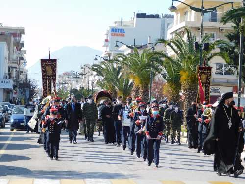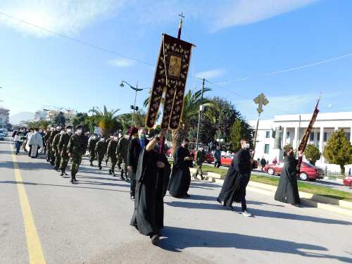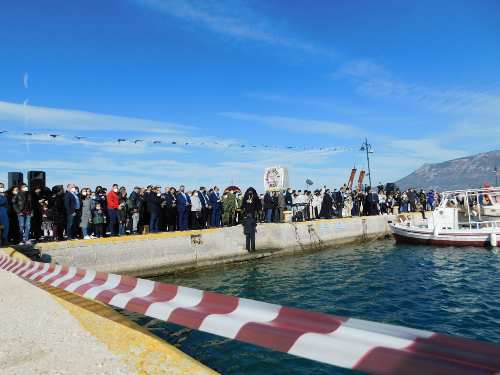 Το πρωί τελέστηκε Πανηγυρική Θεία Λειτουργία στον Μητροπολιτικό Ναό του «Αποστόλου Παύλου» και ακολούθησε λιτάνευση του Τιμίου Σταυρού και της Ιεράς Εικόνας Βαπτίσεως του Κυρίου στην οδό Εθνικής Αντιστάσεως με κατάληξη την προβλήτα της πλατείας Ελευθερίου Βενιζέλου όπου ετελέσθη η Κατάδυση του Τιμίου Σταυρού χοροστατούντος του Σεβασμιότατου Μητροπολίτου Κορίνθου κ.κ Διονυσίου. Ο αγιασμός των υδάτων έγινε παρουσία πολιτικών και τοπικών Αρχών της πόλης.