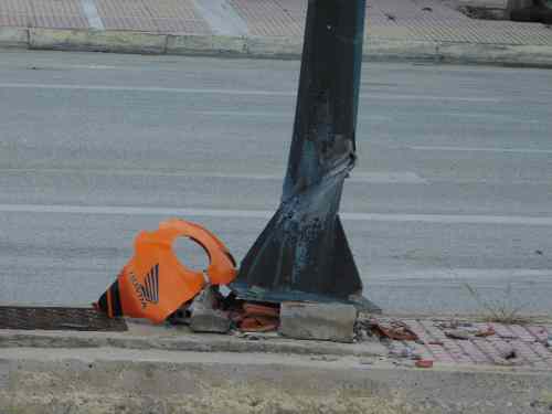 Χαρακτηριστικό της σφοδρότητας της σύγκρουσης είναι τα σημάδια από το φρενάρισμα της μηχανής στο οδόστρωμα αλλά και το ότι οι δύο νέοι αναβάτες εκσφενδονίστηκαν αρκετά μέτρα μακριά, από το σημείο του δυστυχήματος.