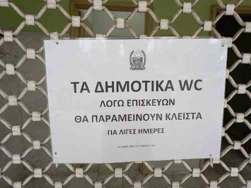 Κάποιος άλλος όμως σου φωνάζει… ”Θα ήθελες”! Και πέφτεις πάνω στην πόρτα που γράφει… ΤΑ ΔΗΜΟΤΙΚΑ WC – ΛΟΓΩ ΕΠΙΣΚΕΥΩΝ ΘΑ ΠΑΡΑΜΕΙΝΟΥΝ ΚΛΕΙΣΤΑ ΓΙΑ ΛΙΓΕΣ ΜΕΡΕΣ!