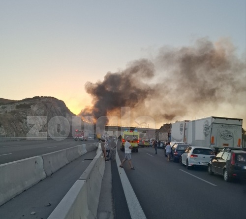 Σύμφωνα με τις πρώτες πληροφορίες, δύο οχήματα συγκρούστηκαν με αποτέλεσμα να ανατραπεί νταλίκα, η οποία στη συνέχεια τυλίχθηκε στις φλόγες. Από τη σύγκρουση τραυματίστηκαν οι δύο οδηγοί καθώς και ένα ανήλικο παιδί, που μεταφέρθηκαν σε νοσοκομείο.