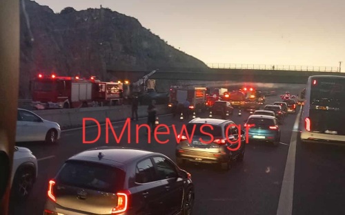 Η Εθνική Οδός έκλεισε προσωρινά και στα δύο ρεύματα στο ύψος της Κακιάς Σκάλας, προκαλώντας μεγάλη συμφόρηση και ακινητοποίηση εκατοντάδων οχημάτων.
