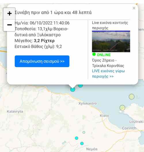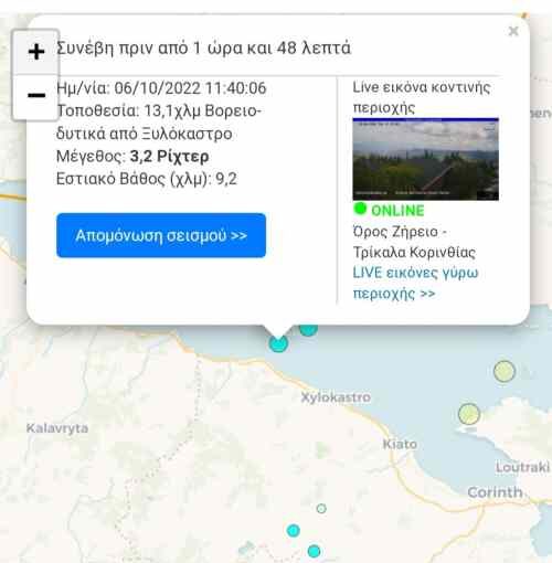 Σήμερα στις 11:40, οι κάτοικοι του Ξυλοκάστρου ένιωσαν να ”κουνιούνται” από τον σεισμό μεγέθους 3,2 ρίχτερ που σημειώθηκε 13,1 χιλιόμετρά Βόρειο – δυτικά του Ξυλοκάστρου και με εστιακό βάθος 9,2 χιλιόμετρα.